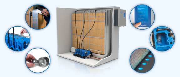 Verdunstungsmodule werden individuell angefertigt, sind modular aufgebaut, um die Konstruktion zu vereinfachen.